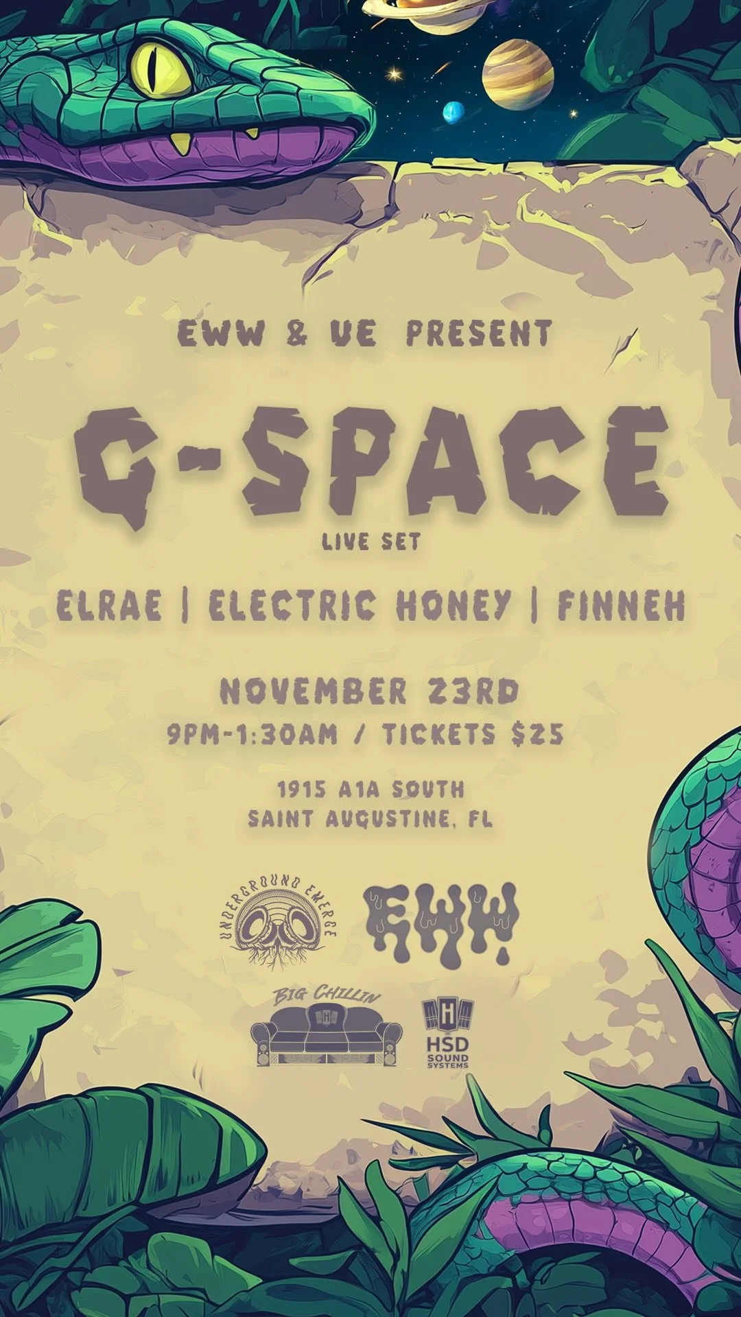 Step into the land of EWW, a micro music and arts festival held at The St. Johns County Fairgrounds just outside of St. Augustine, Florida. EWW is designed for an immersive experience built to inspire all who enter. With intentionally limited tickets, we offer an intimate atmosphere that fosters meaningful connections between guests and artists alike. Whether you join all weekend or just for one night, feel the magic and wonder of a grassroots festival created by small businesses with big dreams.